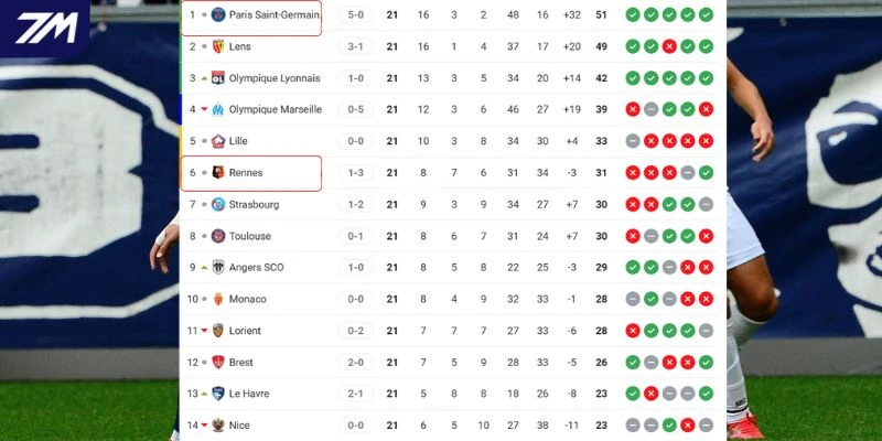 Vị thế của Rennes vs PSG tại đấu trường quốc nội